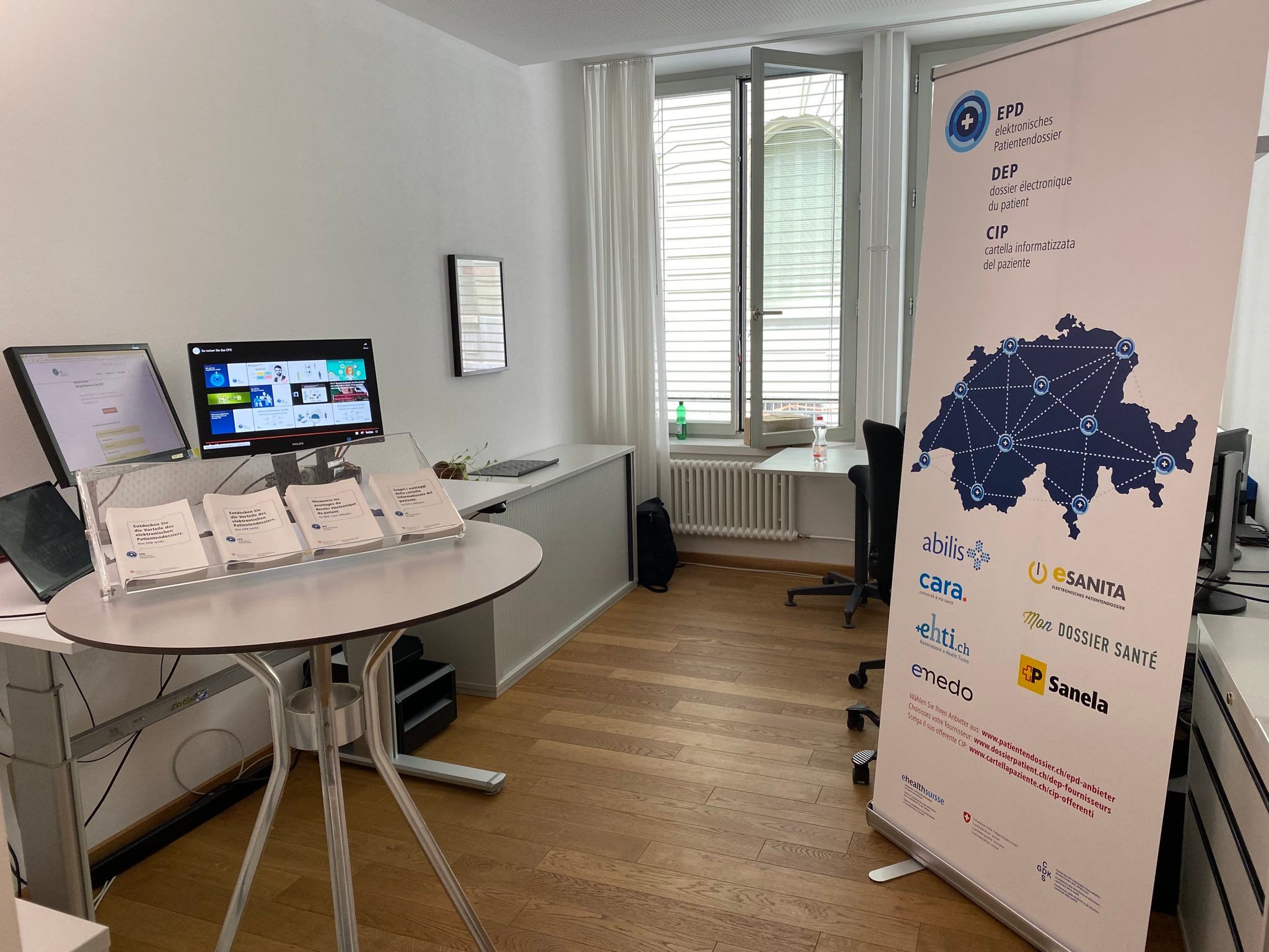 Zusammen mit eHealth Aargau (emedo) und Post Sanela Health AG stellte eHealth Suisse das elektronische Patientendossier (EPD) in den Mauern des Eidgenössischen Departements des Innern vor. An einem Stand konnten sich Besuchende über die Funktionsweise und den Eröffnungsprozess des EPD informieren. Dies führte zu vielen aufschlussreichen Gesprächen.