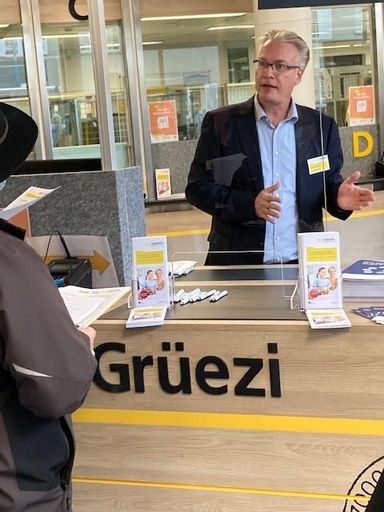 eSANITA lancierte ihr EPD für die breite Bevölkerung am nationalen Digitaltag vom 10. November und war mit einem Informationsstand in der Post beim Bahnhof in Chur. Interessierte Personen konnten vor Ort gleich ein EPD eröffnen. Die Resonanz war sehr positiv: «Dieser Tag markiert gleichzeitig den Startschuss zum EPD in der Südostschweiz», freut sich Richard Patt, Geschäftsführer des Vereins eSANITA. Sehen Sie dazu unseren separaten Blog-Beitrag.